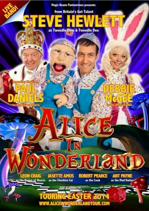 My daughter and I had the pleasure of watching our local Easter pantomime Alice in Wonderland at the Grove Theatre in Dunstable last night, produced by Magic Bean Pantomimes, this was cleverly written and directed by Jamie Alexander Wilson. Starring Paul Daniels, Debbie McGee and ventriloquist Steve Hewlett (from ITV’s Britain’s Got Talent).