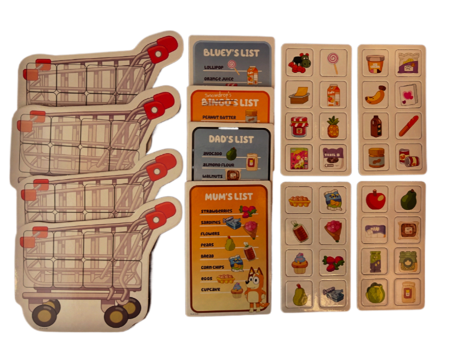 At its heart, the game is easy to understand: each player has a shopping basket board and a list of items to collect. The aim is to find and match the correct pieces until the basket is full. What makes it appealing is how it combines the everyday concept of shopping with the familiar world of Bluey, giving children an instant sense of recognition and excitement.