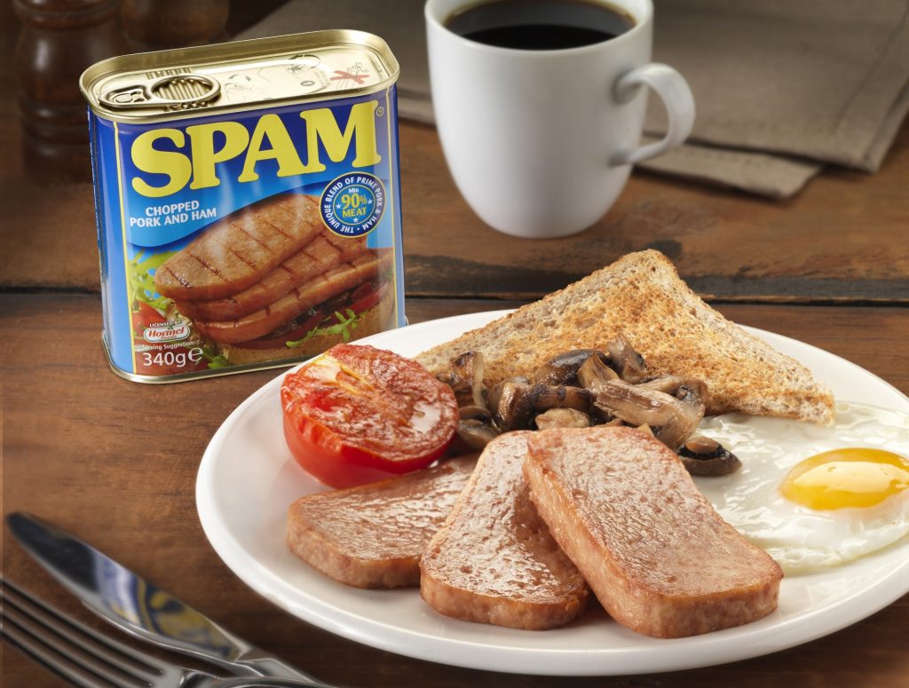 No bacon, no problem. A can of SPAM® Chopped Pork and Ham fries up a treat to make a tasty warming breakfast with the usual favourites such as egg and mushrooms.