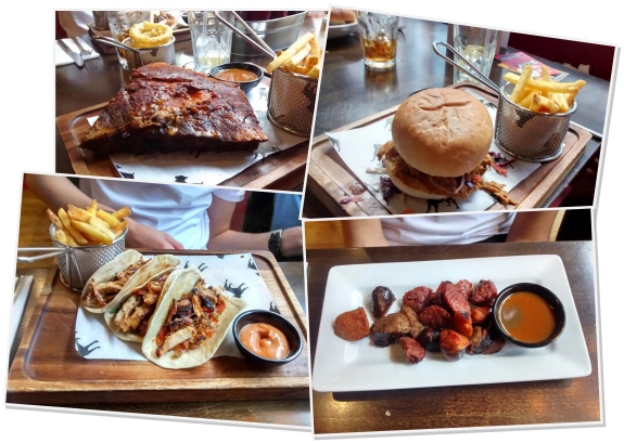 There are lots of delicious dishes on the menu, we chose chicken wings, chicken strips and a smoked sausage dish for starters. They were all very nicely presented and tasted delicious. The chicken strips came with a Blacksticks Blue cheese dip which complemented the chicken perfectly. When ordering our main courses my husband ordered the rack of pork ribs and we were warned that this dish would take a little longer to prepare, we were fine with this but it’s always nice to be told. As it was all the main courses were served quite soon after the plates for the starters had been cleared away. The pork ribs were super succulent and served with chips and a BBQ sauce. We all had a taste and they were quite simply the best ribs that any of us have ever tasted. He also ordered a side dish of onion rings but we should have ordered two as they were quickly shared around the rest of the table! I ordered a pulled pork sandwich which was full of pork and served with slaw and fries. The pork was absolutely delicious and the fries were cooked perfectly. William ordered tacos, which was something new for him but he really enjoyed it and said he would order them again next time we visit!