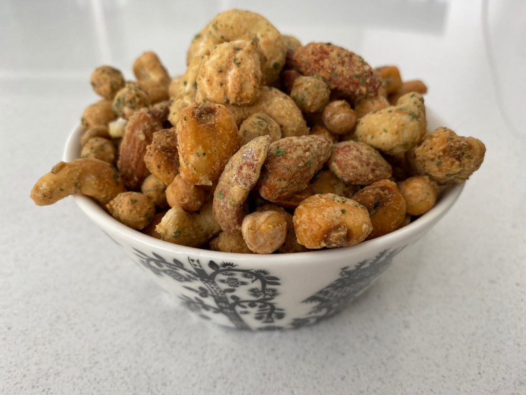 The Rose Harissa nut mix from Belazu Ingredient Co is a high quality mixture of peanuts almonds and cashews roasted in a Rose Harissa spice mix and is in every way delicious . Rose Harissa is an increasingly popular chilli paste which contains rose petals, it’s a versatile ingredient but this is the first time I’ve tried it as a seasoning for nuts and it works perfectly. The freshness of the nuts is immediately evident on opening the bag and the rich and spicy aroma makes your mouth water. The flavour is well coated onto the nuts, its roasted on, not just a dusty flavouring. The complexity of the flavours means that you can chomp your way through a bowlful without fatiguing your taste buds at all. The level of chilli is noticeably warm and enjoyably so. I will have trouble sharing any of these even thought they’re supplied in a massive bag, I’m almost glad not to be expecting any visitors!