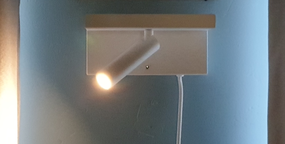 While I love this light, there are some small negatives – the cable length is only 1.2m, I feel this could do with being slightly longer as I have the light about halfway up the wall and it just reached my plug sockets, although if putting next to the bed for bedtime reading it would probably be a good length (obviously depending on where your sockets are). The next small negative is that it is fitted with a 2-pin Euro plug so you will need a adapter to use it (one is not supplied). And finally, the bulb isn’t changeable, so if it were to go the whole unit needs replacing – that said, it is an LED bulb that has a 30000 hours lifetime (about 3.5 years if left on 24/7).