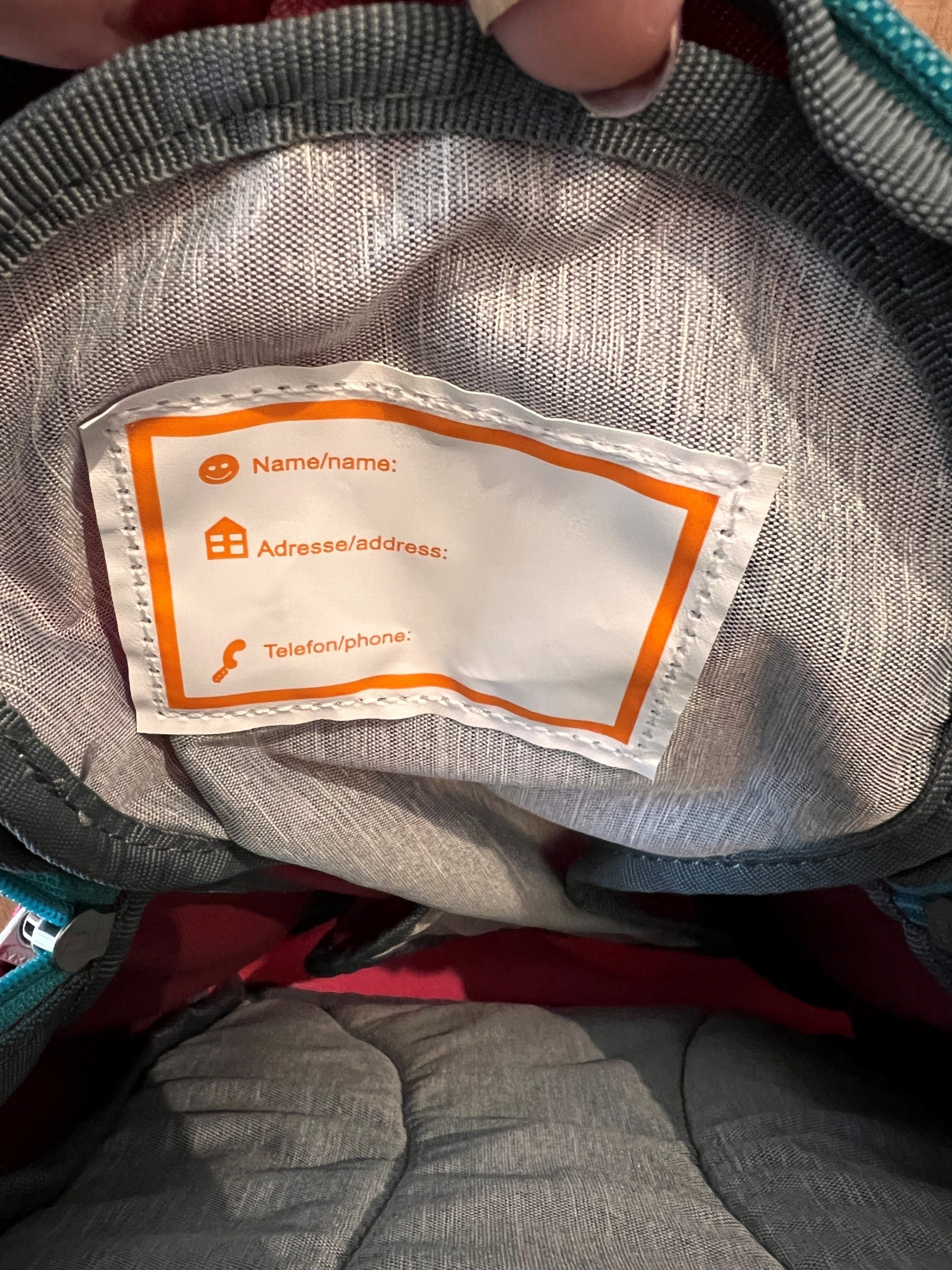 There is one main compartment with a dual zip which allows you to fully open the rucksack and gives you ample access to put things inside and take out. I love the attention to detail with the fact that there is a label sewn inside the rucksack where you can right the child’s name, address and telephone number if you wanted to.