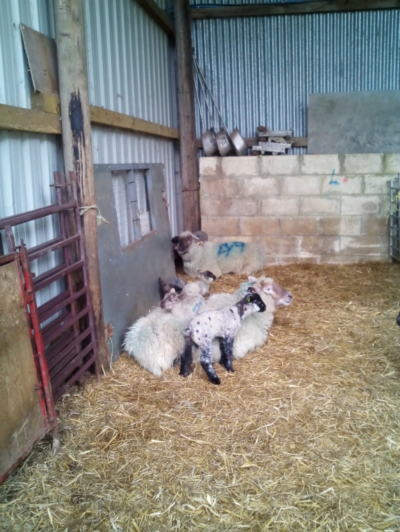 We then took a stroll through the farmyard and woodland walks. This is a short trail past some farm animals (pigs, goats, ducks etc.) and through the woods – where there was an opportunity to try den building. This walk takes you past some large barns where you also have the chance to handle some animals (guinea pigs and rabbits) and see cows, llamas and lots of ewes with their lambs. There were also lots of ewes and lambs in the fields – each was numbered so we had lots of fun matching the numbered lambs to their Mums!