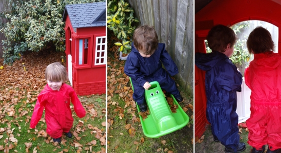 Looking out the rain sodden windows of our house most people would be a little disheartened but not our 3 year old twin boys, no. They want to go out to play. They want to play a game their aunt from Ireland taught them called Puddle Puddle Splash Splash. So out come the all-in-ones waterproofs from Muddy Puddles.