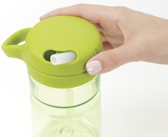 The twisting mechanism is great. There is a straw that is cleverly hidden when the lid is screwed around; it pops up when it is twisted the other way. The parts can quickly and easily be disassembled for washing and put back together again afterwards.
