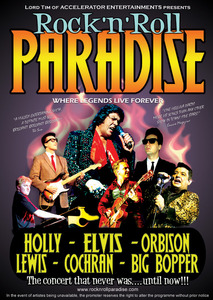 Rock n Roll Paradise features the music of Buddy Holly, Eddie Cochran, Elvis Presley, Jerry Lee Lewis, Roy Orbison and the Big Bopper. The Big Bopper (John Simon Rawlings) acts as compere and with his witty banter links all the acts together and turns it into a show rather than just a bunch of 60’s tribute acts.