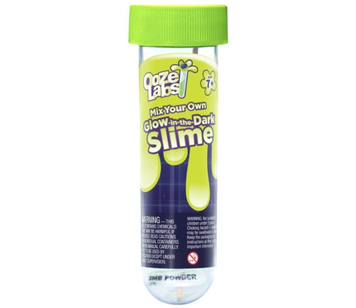The slimes are each contained in their own test tubes with a screw-on lid, and everything that you need to make your slime is included. Mixing the slime up is super easy and relatively mess-free, because of the test tube design. I thought the packaging was really well thought out in that the test tube lid acts as a steadying base for the test tube, so it can safely be sat on the table so you have two free hands to work with. The sets are incredibly simple, and the ooze is made by adding powder to water. The solution is then stirred with the lollipop stick included and then the lid is screwed onto the test tube and the goo is shaken vigorously for 30 seconds at a time for around ten minutes.