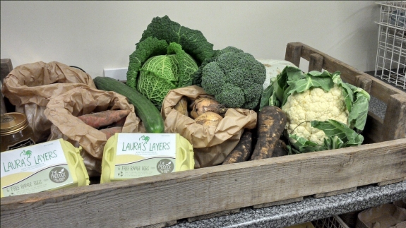 Prices start from £7.50 to £20 for vegetable boxes, £1.50 for 6 eggs, fresh fruit from £1.50, salad bags £8. Delivery is free locally subject to a £7.50 minimum spend.