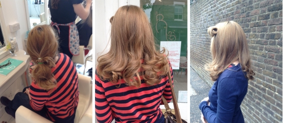 Although the salon doesn’t specialise in cuts as such, you can get a trim before your style (or a restyle if required). I went ahead with the trim as it’s been a little while since my last cut. All my ends were trimmed up and some shape added to the front as it was looking a little heavy. It took about another 30 minutes to blowdry my hair into Forties style curls and add the side roll. I was shown how to back comb, roll and pin it so I will give it a go at home but I am sure it is much harder than it looks. During my styling session I was told that they hold classes in the week to show you how to style your own hair, I thought this was a fantastic idea and something I’d love to try in the future. You can book the lessons direct on the website and as it says they would be great with a group of friends.
