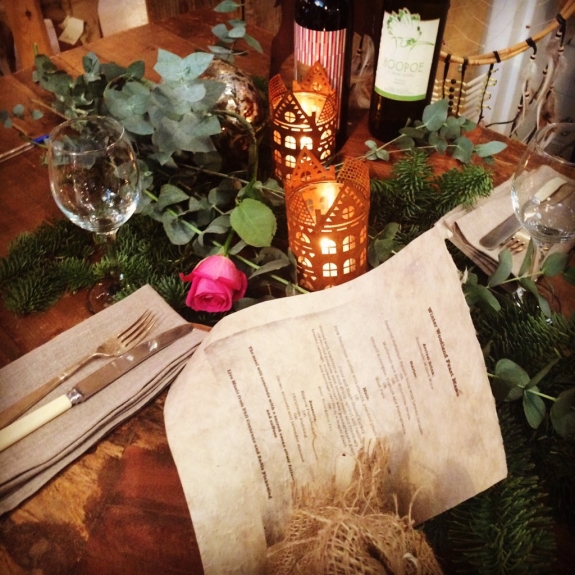We arrived a little early for our Winter Woodland Feast experience as it was our visit to The Yard and we misjudged how long it would take us to drive the 30 mile journey to the affluent Alderley Edge. The car park attached to the venue was a bit of a squeeze, but we managed to park successfully. As we entered the old-worldly hidden gem, we were greeted by a pleasant young lady who introduced herself as Sadie (who I later discovered was one of the owners). We were offered a glass of delicious mulled wine and shown to our table for the evening.